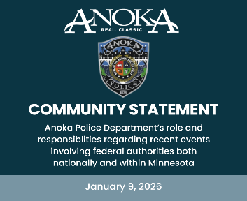 Considering recent events involving federal authorities – including the U.S. Department of Homeland Security (DHS) and U.S. Immigration and Customs Enforcement (ICE) – both nationally and within Minnesota related to fraud and immigration enforcement, the Anoka Police Department would like to clarify its role and responsibilities to our residents.