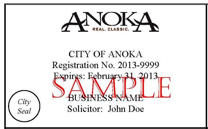 As part of the license application review process, in an effort to protect the public safety and welfare of our community, City staff conducts a criminal background investigation on each individual. Upon City approval, each individual is issued an official City Badge (JPEG) which will have the City seal embossed on it.  The badges are to be worn on the outside of clothing so that it is easily seen.  If a peddler or for-profit solicitor comes to your door and is not wearing a City issued badge, please call us at 763-576-2740.